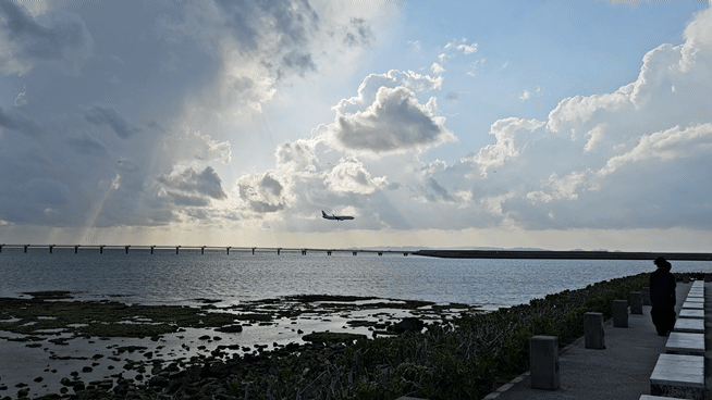 세나가섬은 나하공항 근처에 있기에 비행기 착륙 장면을 가까이서 찍을 수 있다.