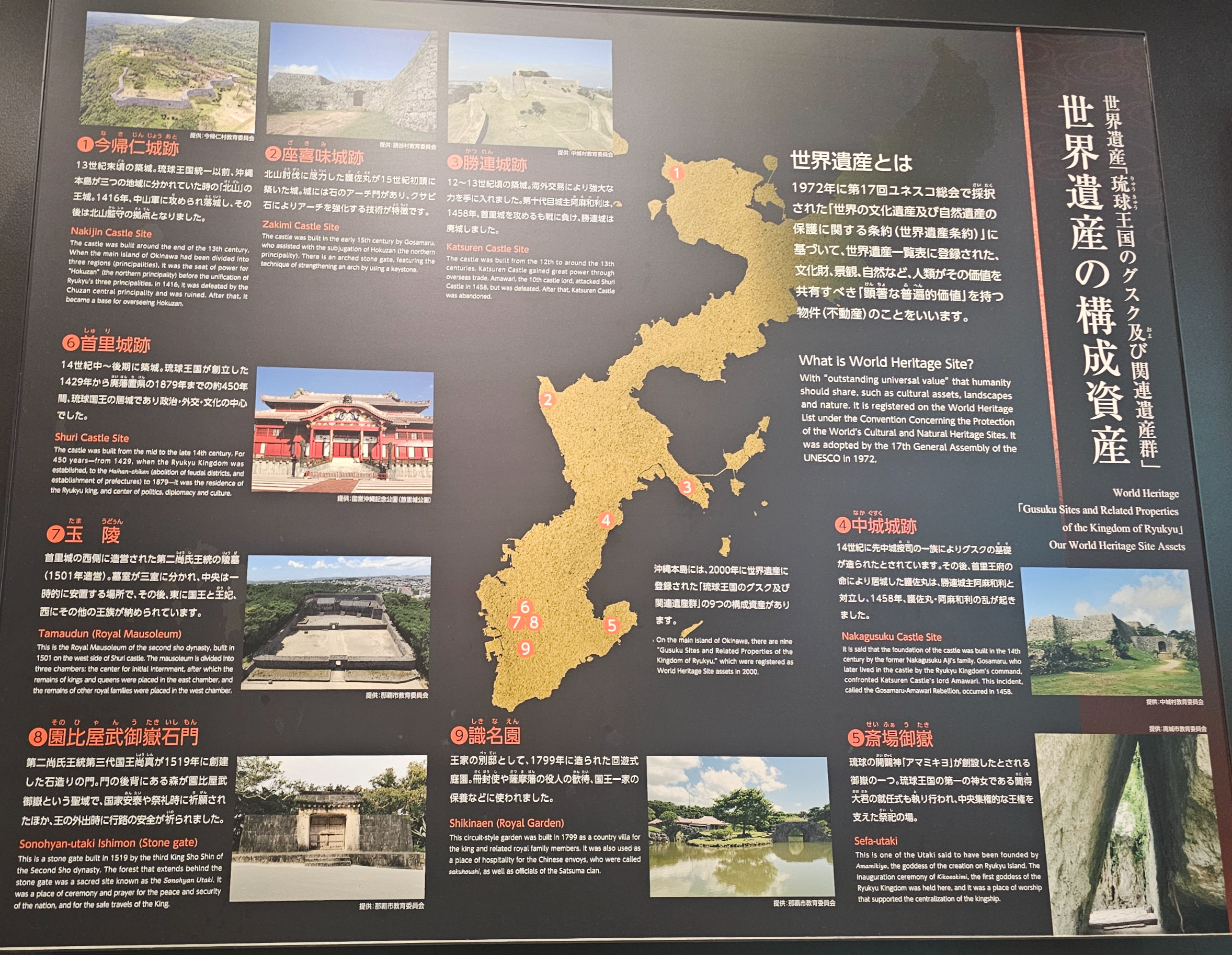 오키나와의 유네스코 세계문화유산이 보인다.