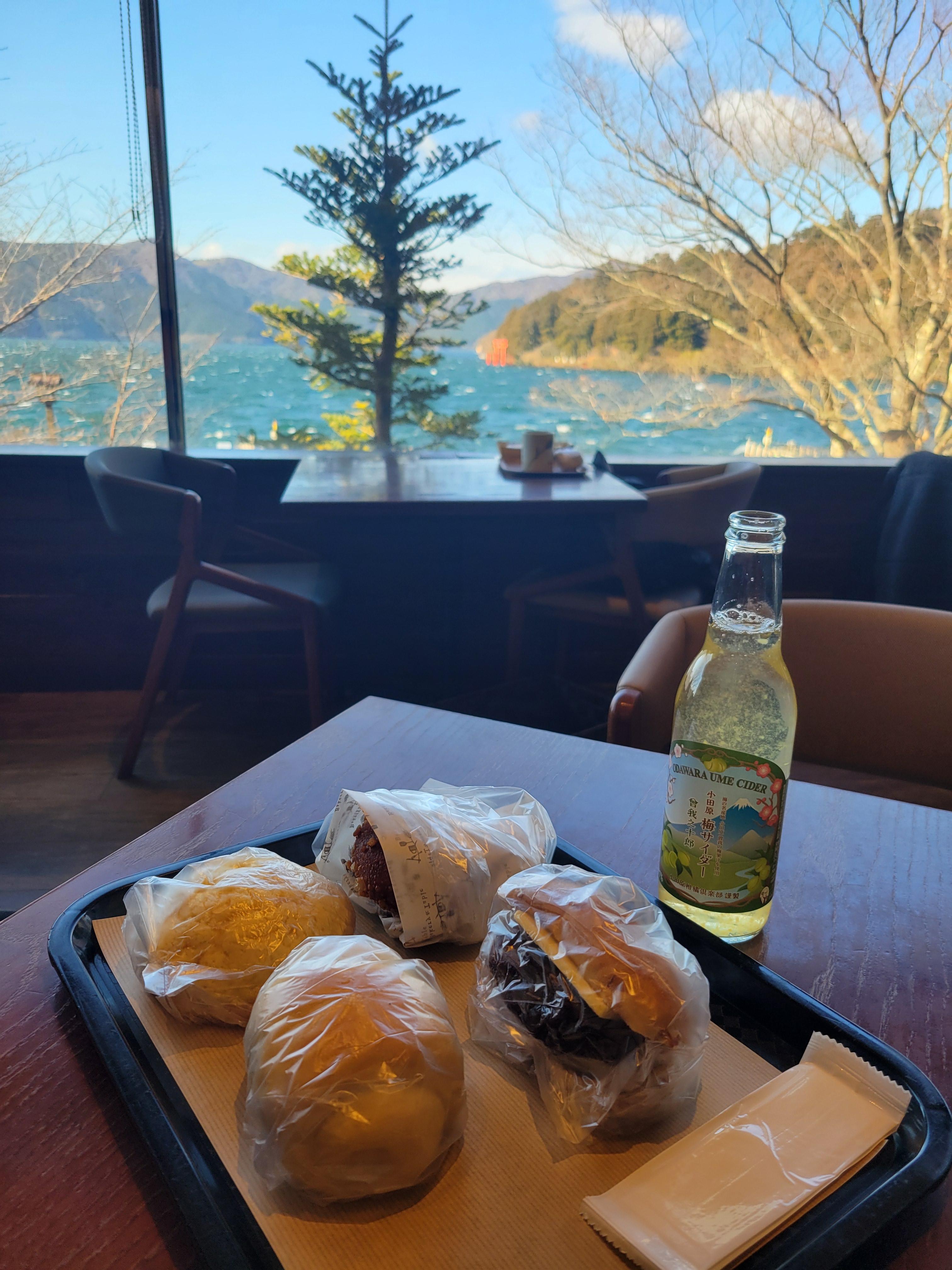 평화의 토리이에서 돌아와 아시노 호수 바로 옆 빵이 유명한 빵집에서 잠시 휴식을 취했다.