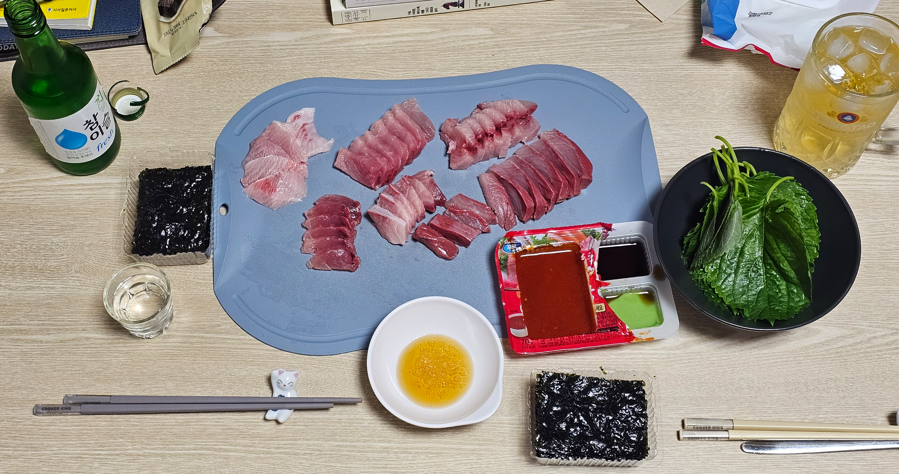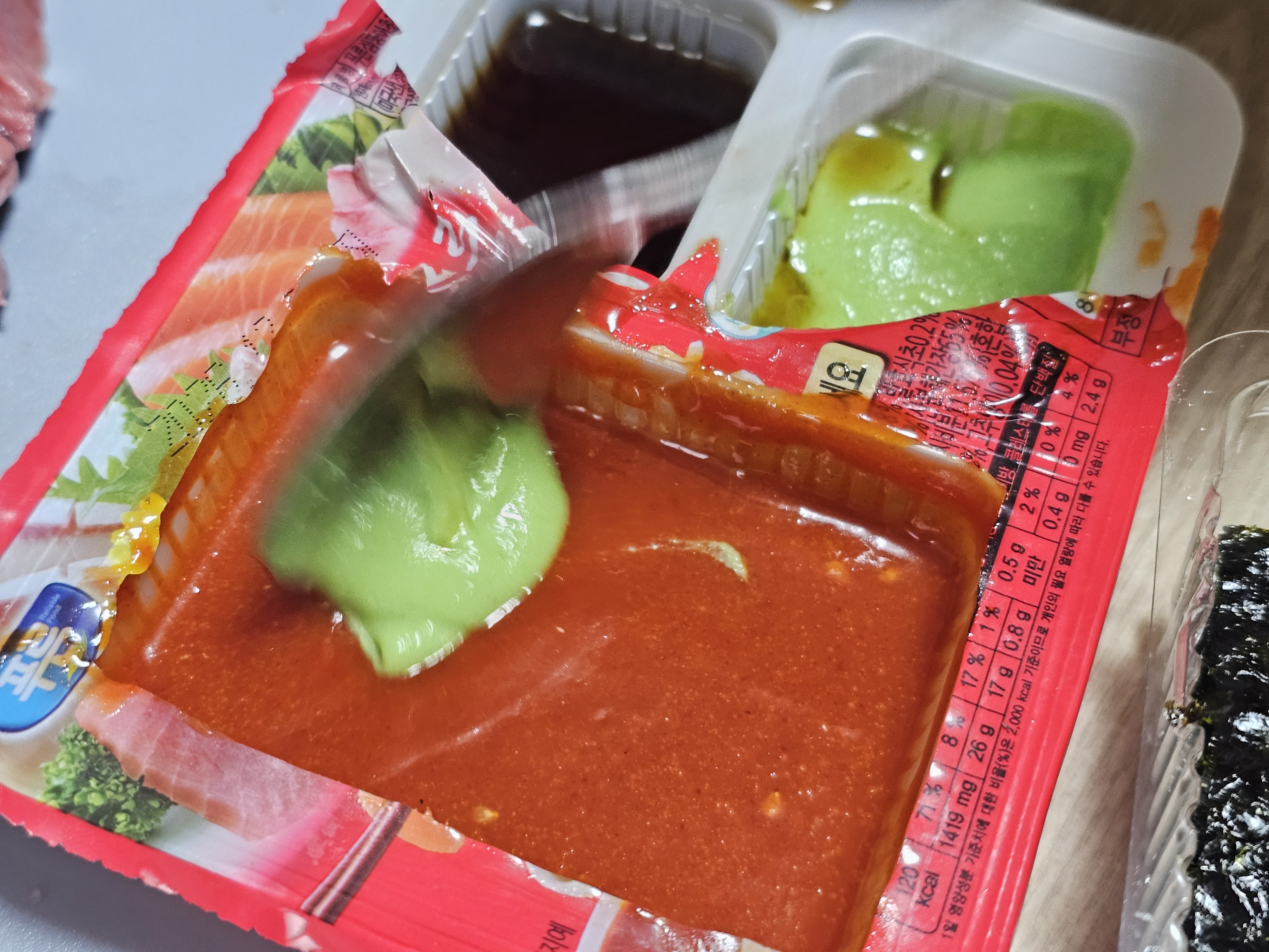 초장과 간장에는 와사비를 풀어버렸다 ㅋ