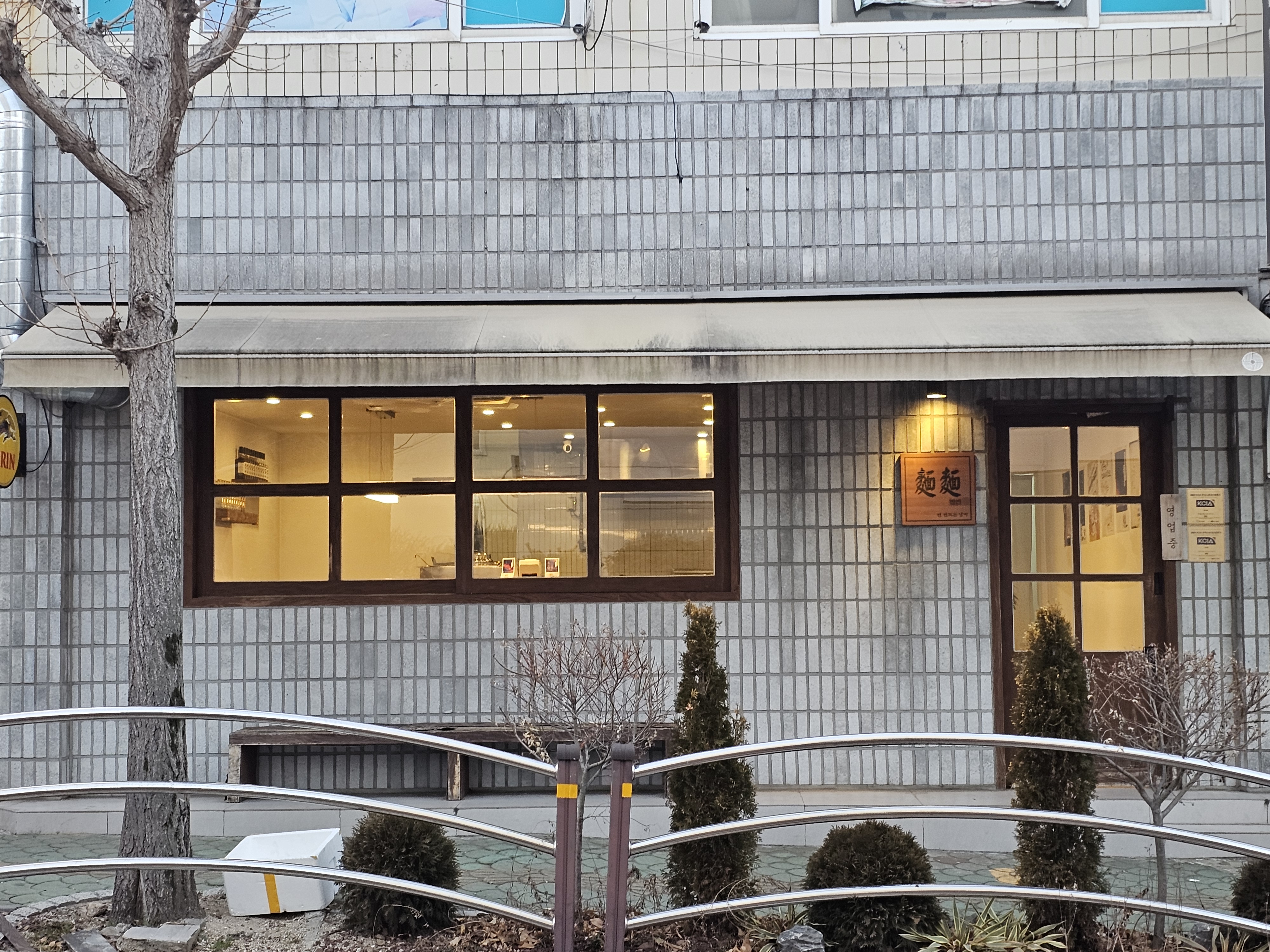 간판이 문옆에 아주 작게 있다.