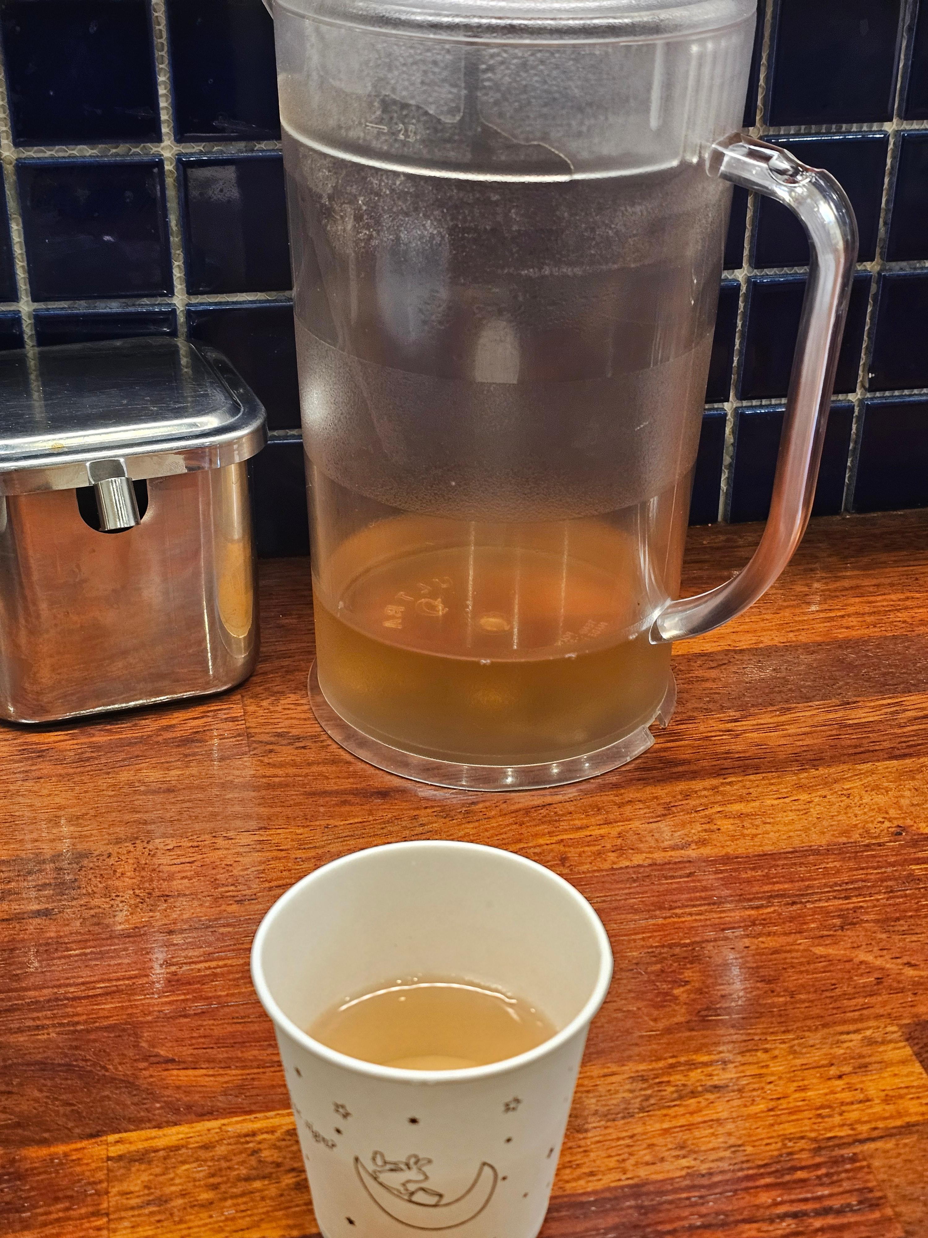 라멘을 먹고 보리차를 먹으니 끝맛이 개운하게 느껴졌다.