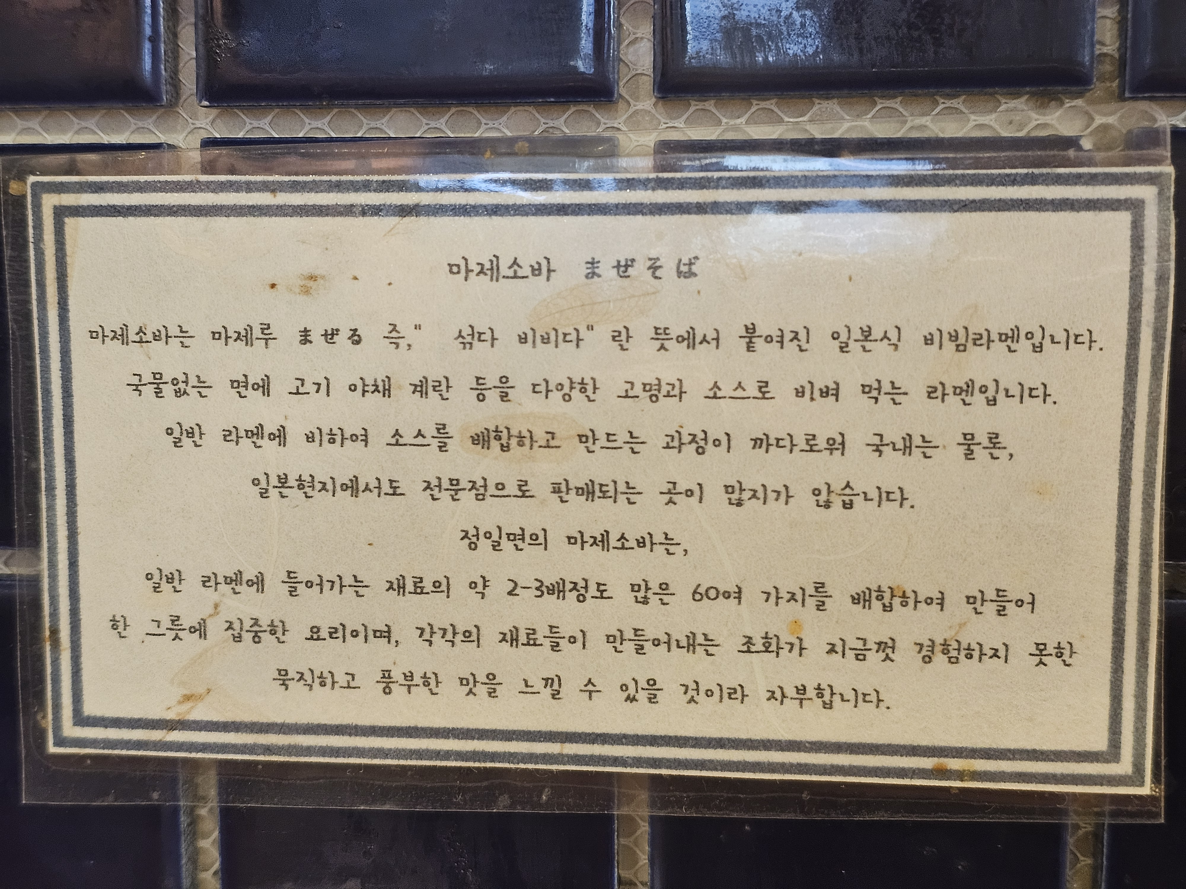 덕분에 아내는 다음번에 마제소바도 먹으러 와보고 싶다고 했다.ㅋ